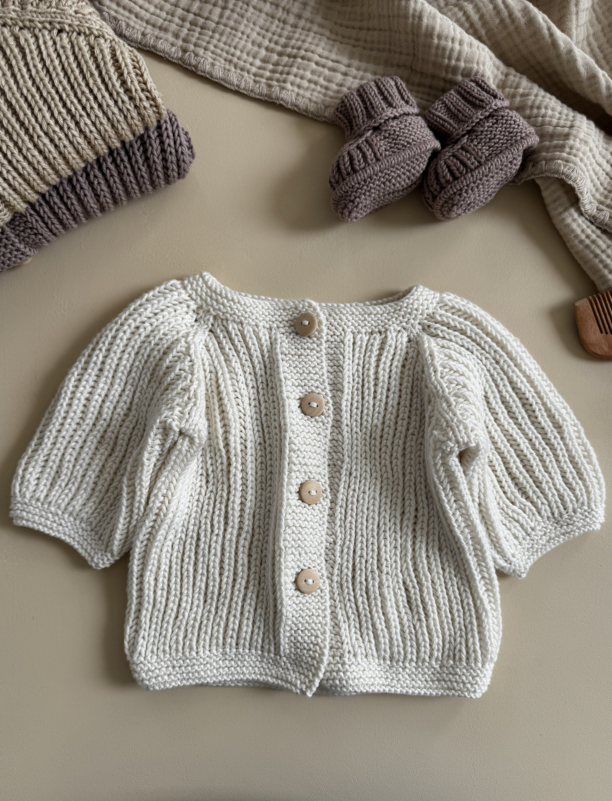 Een tijdloos kledingstuk voor de allerkleinsten: dit handgebreide babyvest is gemaakt van 100% biologisch katoen en afgewerkt met mooie houten knopen. De natuurlijke materialen maken dit vestje niet alleen stijlvol, maar ook zacht, ademend en vriendelijk voor de gevoelige babyhuid.